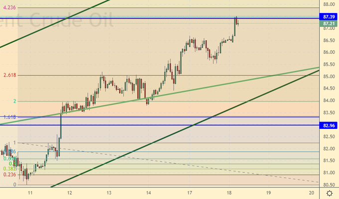 Продажа: сейчас и при подходе к 87.80. Стоп: 88.40. Цель: 82.50.