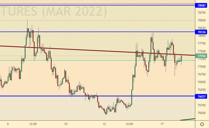 Покупка: нет. Кто в позиции от 76600, 76000 и 75700, держите стоп на 75600. Цель: 82000 (120000?!).