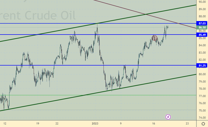 Рынок нефти будет стараться пройти выше линии сопротивления в районе 87.00. Учитывая то, что проблемы с поставками в Европу в целом решены, быкам будет сложно навязать своё видение ситуации, так как сильного беспокойства на счет дефицита у участников рынка нет.