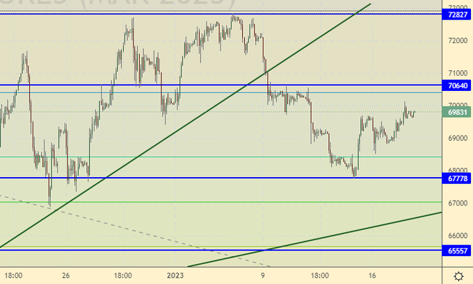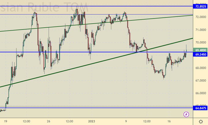 Выше 70.00 рынок вернуться пока не смог. Было бы логичным попробовать спуститься к 65.00 еще раз, так как ждем укрепления рубля перед завершением налогового периода 25 января.