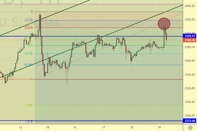 Продажа: нет. Кто в позиции от 2415, перенесите стоп на 2430. Цель: 2175.