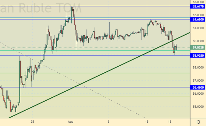 Продажа: нет. Кто в позиции от 59.00, 60.30 и 61.20, перенесите стоп на 61.30. Цель: 57.00 (46.00?!!!)