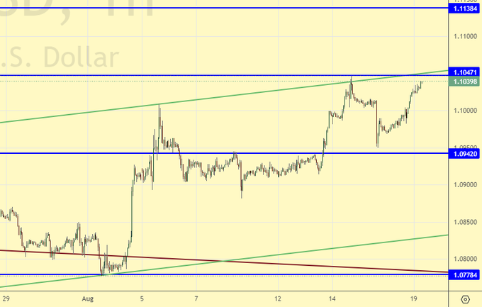 Рост выше 1.1050 заставит нас войти в покупку. Нельзя исключать ускорения падения доллара, о чем свидетельствует и упорный (упоротый) рост золота.