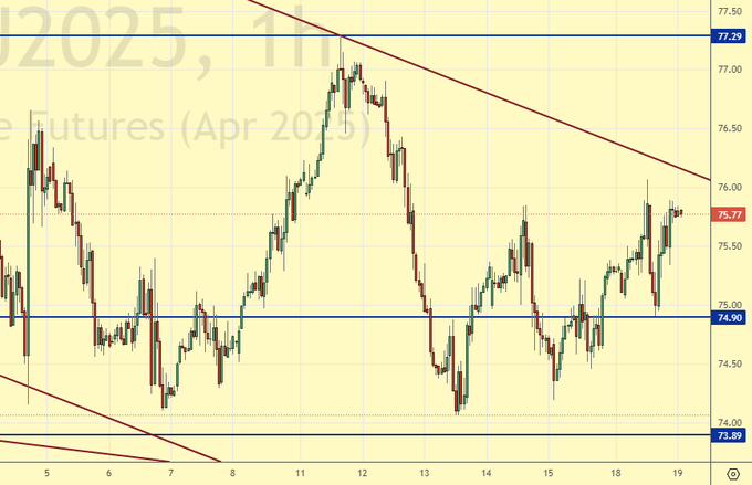 Покупка: нет. Кто в позиции от 74.81, перенесите стоп на 74.80. Цель: 90.00.