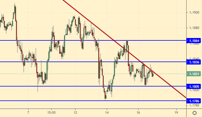 Продажа: нет. Кто в позиции от 1.1880, перенесите стоп на 1.1846. Цель: 1.1536.