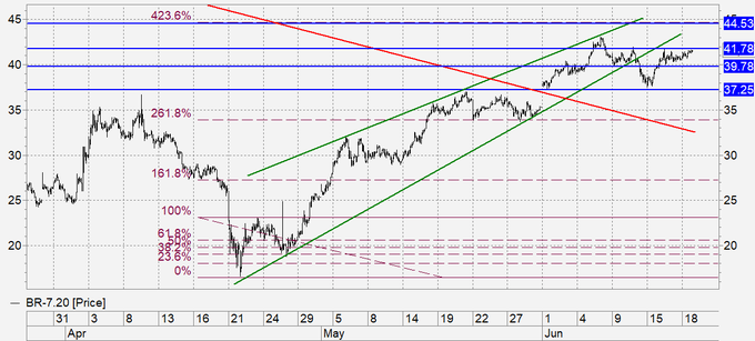 Продажа: при подходе к 44.50. Стоп: 46.50. Цель: 28.00. Думать после падения ниже 40.00.