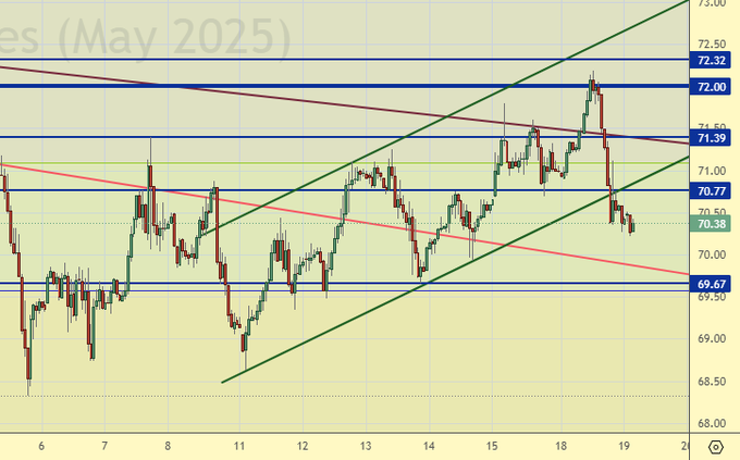 Продажа: нет. Кто в позиции от 72.00 и 71.39, перенесите стоп на 71.80. Цель: 60.00.