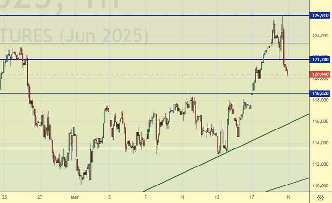 Продажа: при подходе к 124000. Стоп: 125300. Цель: 105000.