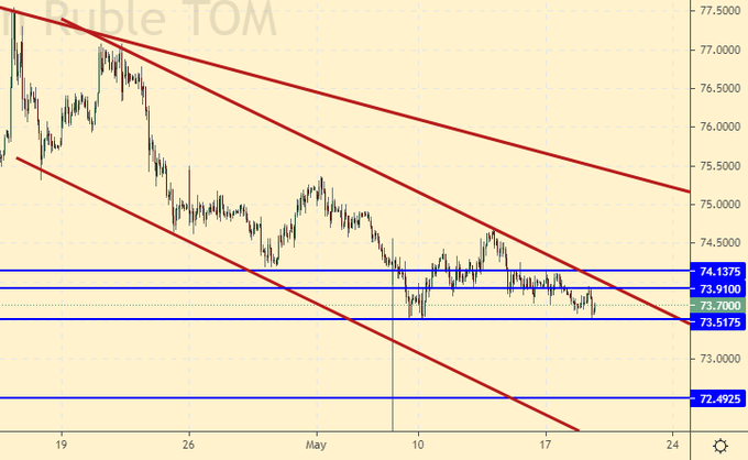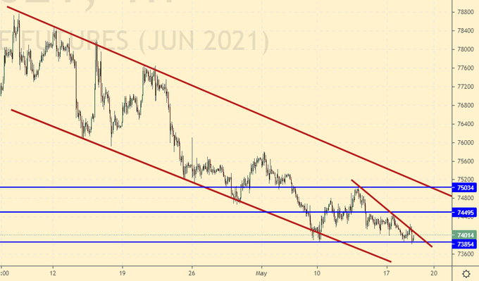 Покупка: при росте выше 74100. Стоп: 73800. Цель: 78000.