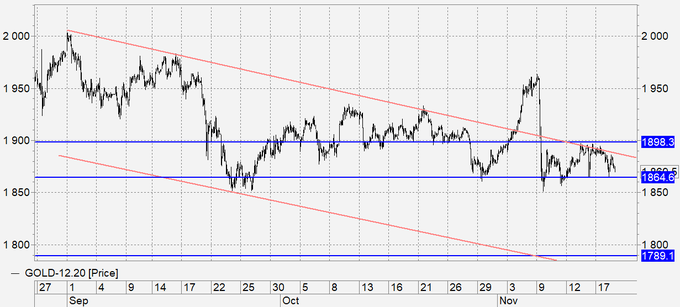 Доллар вчера несколько окреп, что не позволило котировкам золота пробиться выше 1900. Ситуация медвежья. Шансов на то, чтобы пробиться вверх у рынка очень мало. Любой удар, который спровоцирует падение ниже 1850, приведет к тому, что мы быстро окажемся на 1780.