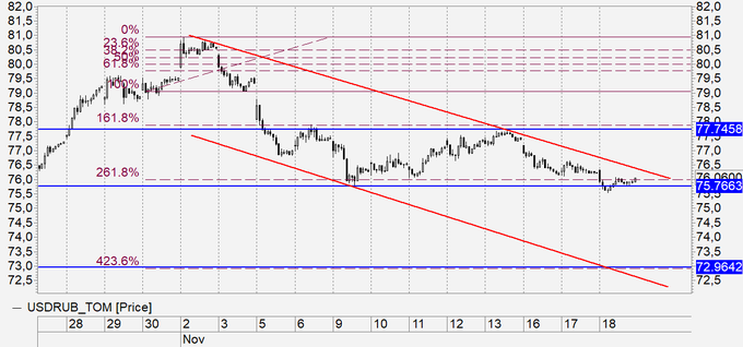 Сегодня будем проверять на прочность уровень 76.00, если рынку не удастся закрепиться выше него, то нас ждет активное падение к 73.00.