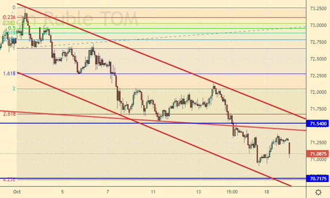 Читая наши прогнозы, вы могли заработать на фьючерсе на пару доллар/рубль, взяв ход вниз от 72700 до 71900, а также на самой паре доллар/рубль взяв ход вниз от 71.80 до 71.15.