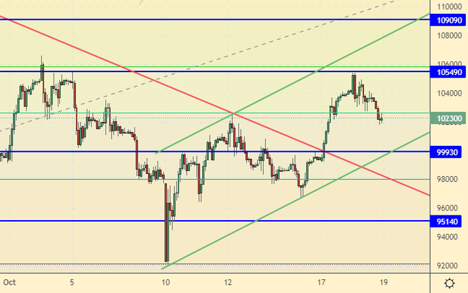 Покупка: при откате к 100000. Стоп: 97000. Цель: 120000. Думать в случае роста выше 106000.