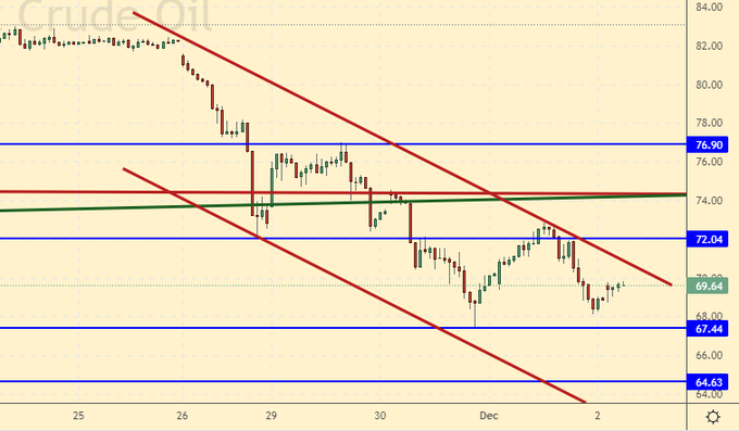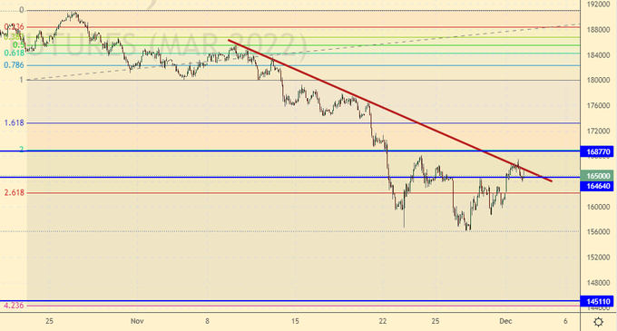 Хорошие уровни для входа в шорт. Рынок акций не станет сегодня проявлять себя в позитивном ключе пока не получит информацию со стороны ОПЕК+. Если сюрпризов не будет, то мы должны продолжить падение в район 150000, после чего начнется Новогоднее ралли.