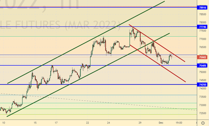 Продажа: нет. Кто в позиции от 75.50, перенесите стоп на 73.70. Цель: 60.00.