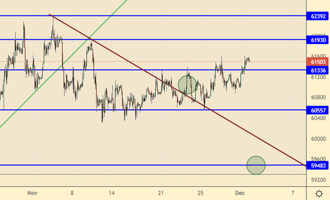 Покупка: при подходе к 59400. Стоп: 58800. Цель: 70000. Кто в позиции от 61000, держите стоп на 60800. Цель: 70000.