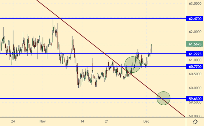 Покупка: при подходе к 59.60. Стоп: 59.20. Цель: 70.00. Кто в позиции от 60.60, перенесите стоп на 60.45. Цель: 70.00.