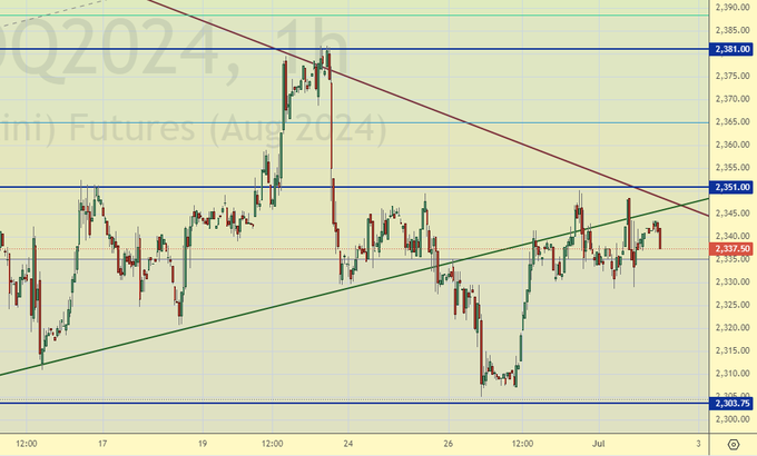 Продажа: нет. Кто в позиции от 2374, держите стоп на 2352. Цель: 2100.