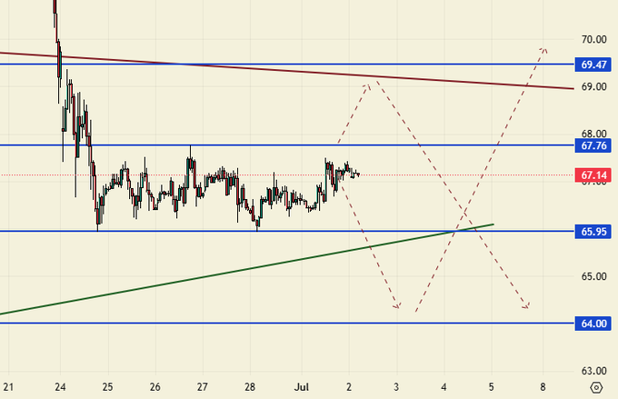 Покупка: при подходе к 64.00. Стоп: 63.00. Цель: 70.00.