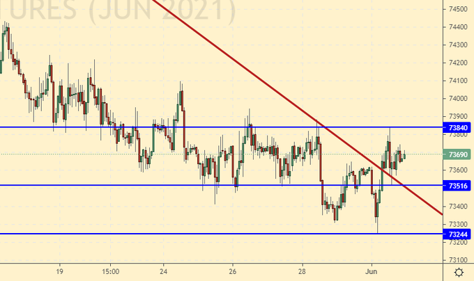 Покупка: после роста выше 74000. Стоп: 73700. Цель: 80000.