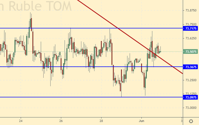 Покупка: после роста выше 73.75. Стоп: 73.36. Цель: 80.00.