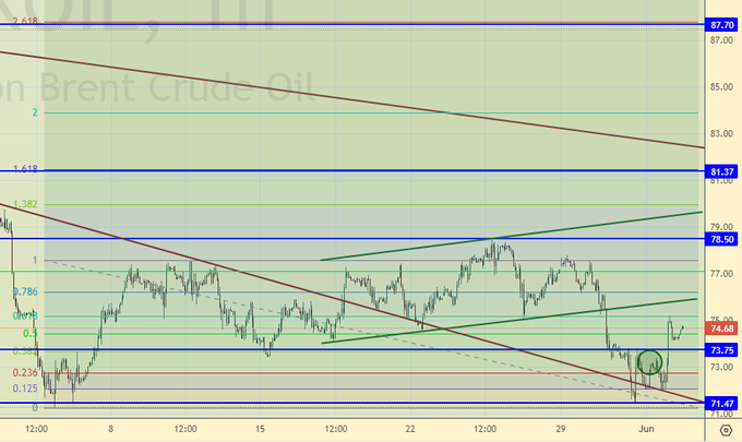 Скорее всего мы так и останемся в районе 75.00 перед выходными. Если противостояние России и Садовской Аравии по поводу необходимости и далее сокращать добычу (Москва против), выйдет на новый уровень, то это навредит рынку в любом случае.