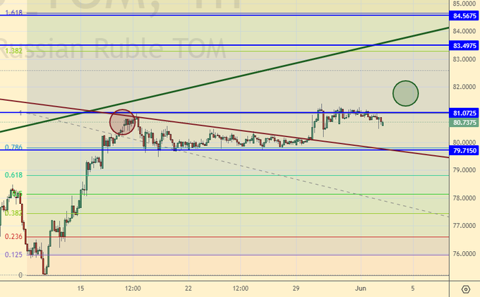 Пока рынок держат. Снова появились предпосылки для укрепления рубля. Но мы пока подождем с продажами, так как неопределенность высока. Отметим, что рынок утратил эластичность и теперь будет двигаться рывками.
