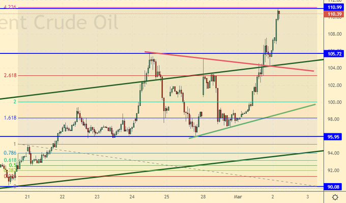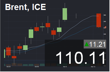 Согласно данным API коммерческие запасы нефти в США за неделю снизились на 6.1 млн. баррелей. Рынок отреагировал на выход данных ускорением роста цен. Однако, мы уперлись в технически значимую область 110.00.