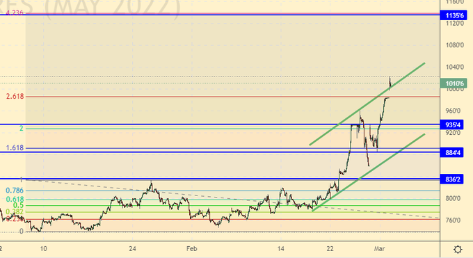 Торги на рынке акций вчера не проводились. Если сегодня они все-таки будут открыты, что ж… получим гэп вниз в район 40000. Далее прибегут мелкие спекулянты, а также деньги из бюджета в размере 1-го триллиона рублей и будут покупать. Купят всё. Но это уже не рынок. Хотя… тот, кто верит в светлое будущее будет закупаться именно сейчас на долгий срок. Но нужно верить не в нормализацию отношений с Западом, а в русское экономическое чудо в следующие 20 лет.