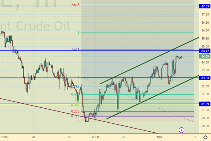 Будет непросто сразу пройти выше 84.70 при таком характере торгов как сейчас. Но в целом быки продолжают задирать рынок, единственное, у них уходит крайне много сил для того, чтобы тащить котировки вверх.