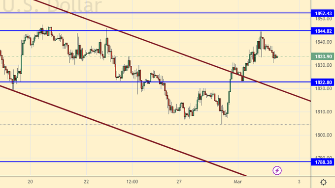 Продажа: при подходе к 1860. Стоп: 1880. Цель: 1790.