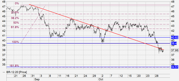 Продажа: нет. Кто в позиции от 42.50, перенесите стоп на 39.60. Цель: 35.00.