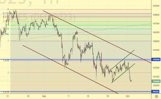 Продажа: нет. Кто в позиции от 105500, держите стоп на 103300. Цель: 93600.