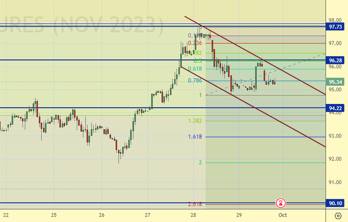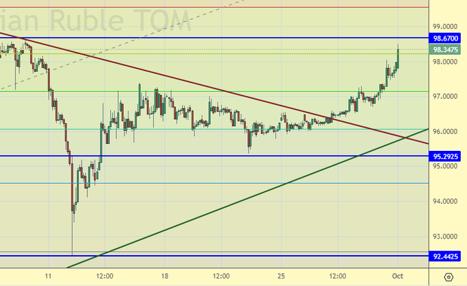 Продажа: нет. Кто в позиции от 97.70, держите стоп на 97.20. Цель: 90.20.