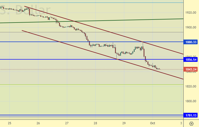 Продажа: при подъеме к 1865. Стоп: 1875. Цель: 1780.