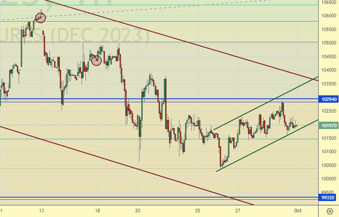 Продажа: нет. Кто в позиции от 105500, держите стоп на 103300. Цель: 93600.
