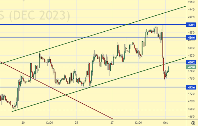 Пшеница (декабрьский контракт, CME Group, исполнение 14.12.2023)