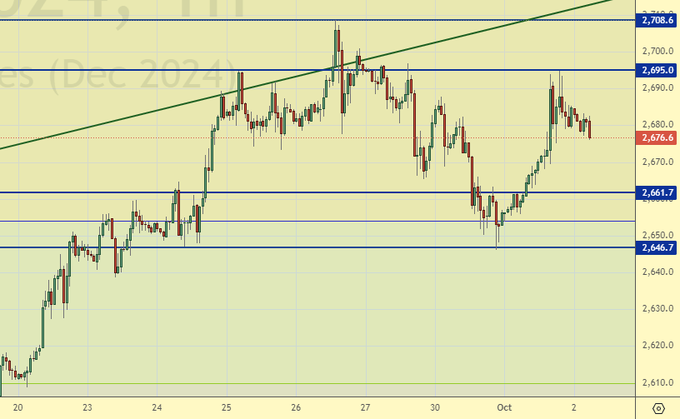Покупка: нет. Кто в позиции от 2659, перенесите стоп на 2653. Цель: 2720.