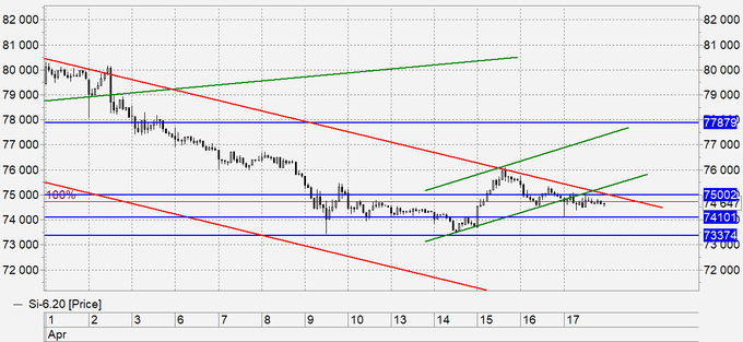 Покупка: нет. Кто в позиции, держите стоп на 73900. Цель: 82000.