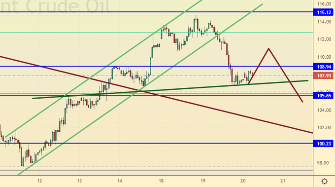 Продажа: при подъеме к 112.00. Стоп: 114.00. Цель: 100.00.