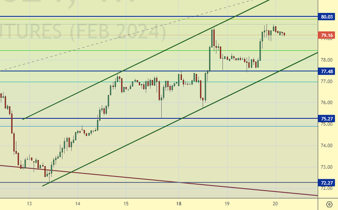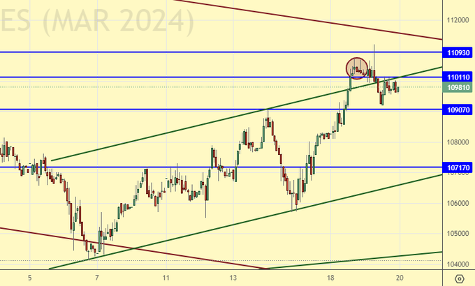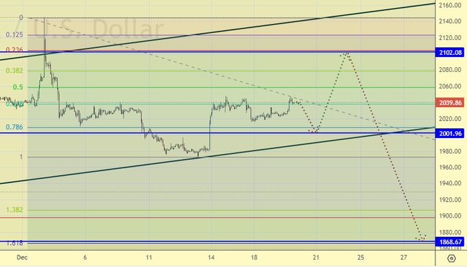 Мартовский контракт. Продолжим посматривать вниз, так как что-то с рождественским ралли у нас не очень хорошо складывается. В целом накачка экономики деньгами в следующем году продолжится, что предполагает, как и инфляцию, так и высокие ставки. Сильного разочарования в фондовом рынке не будет до тех пор, пока поступления от продажи ресурсов будут носить постоянный характер.