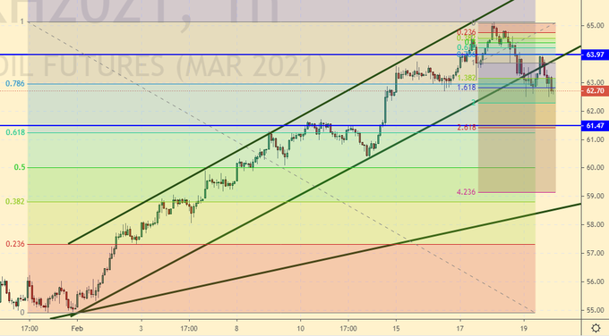 Цены на нефть перестали расти. Технически созданы предпосылки для развития коррекционного хода в районы 61.50 и 59.00. Уровень 60.00 также не выбрасываем из рассмотрения.