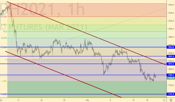Для придания завершенности локальной картине золоту надо посетить 1737. Дальнейшее развитие событий пока под вопросом. Рынок ждет, что экономика США проснется, а она пока не очень-то и хочет этого делать. А раз так, то… Очень много дешевых денег в системе и очень мало у людей (падение спроса). Если Америка не перезапустится, то золото пойдет вверх.