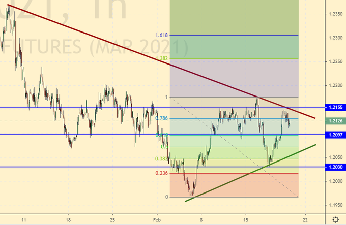 «Для того, чтобы подтвердить свои амбиции на рост, евро должен пробиваться выше 1.2100», — писали мы вчера. И он-таки смог. Следующий шаг – это взятие уровня 1.2155. Если в марте ФРС не заявит, что готов повышать ставку, у доллара начнутся непростые деньки, именно на это делают ставку покупатели евро.