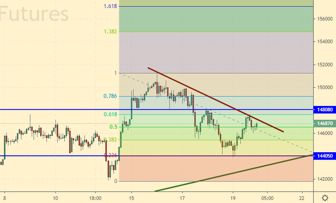 Если рынок сможет пройти выше 148000, то возникнут предпосылки для продолжения восходящего движения. При благоприятных обстоятельствах мы можем посетить отметку 160000, более сильный рост не просматривается.
