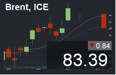 Цена в долларах за баррель. Для пересчета в доллары за тонну нефти марки Brent, необходимо цену умножить на 7,59.