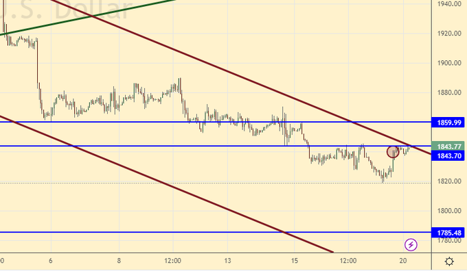 Продажа: при подходе к 1860. Стоп: 1880. Цель: 1760. Кто в позиции от 1950, держите стоп на 1890. Цель: 1760.