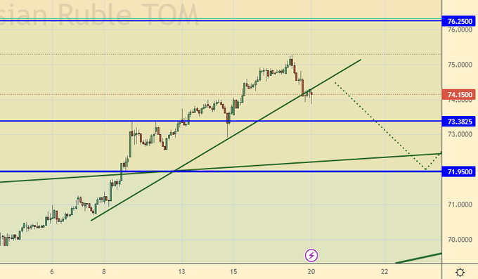 Продажа: сейчас. Стоп: 74.60. Цель: 70.00.
