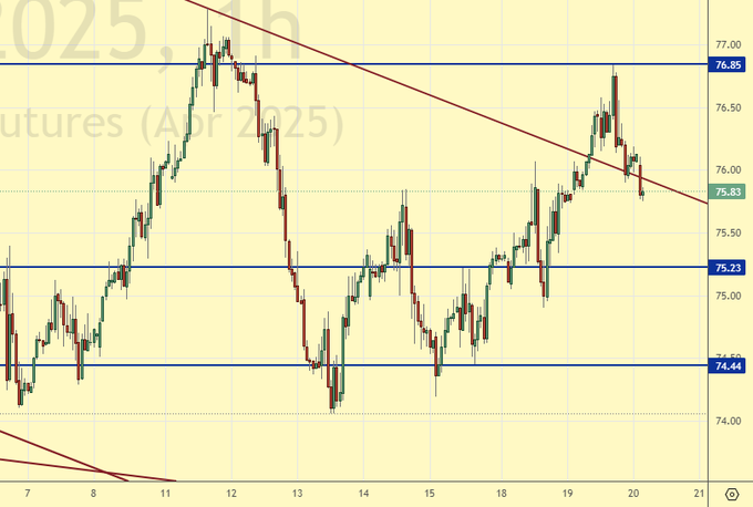 Покупка: нет. Кто в позиции от 74.81, держите стоп на 74.80. Цель: 90.00.