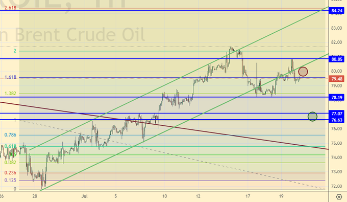 Продажа: сейчас и при подходе к 80.00. Стоп: 80.40. Цель: 66.66. Или при подходе к 84.20. Стоп: 85.20. Цель: 66.00.